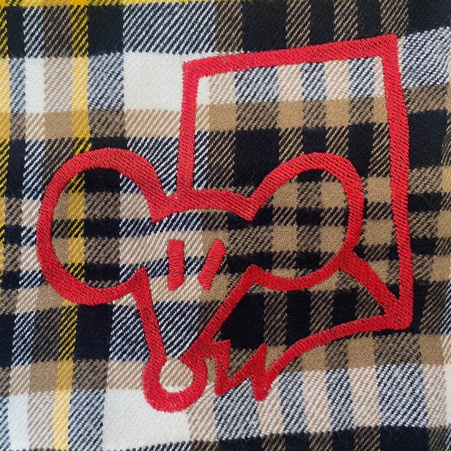 Made from a yellow, grey, black and white plaid heavy 100% cotton flannel fabric.